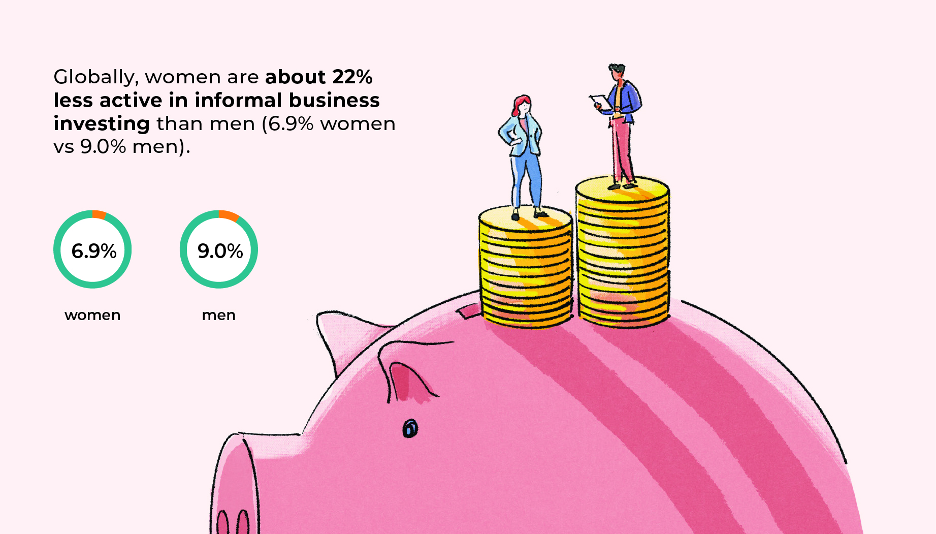 Another barrier relates to investment. Women were 2.5 times more likely to invest in women than men investors. Two-thirds of informal investments went to men, suggesting that women remain underrepresented as both investors and recipients of investment.