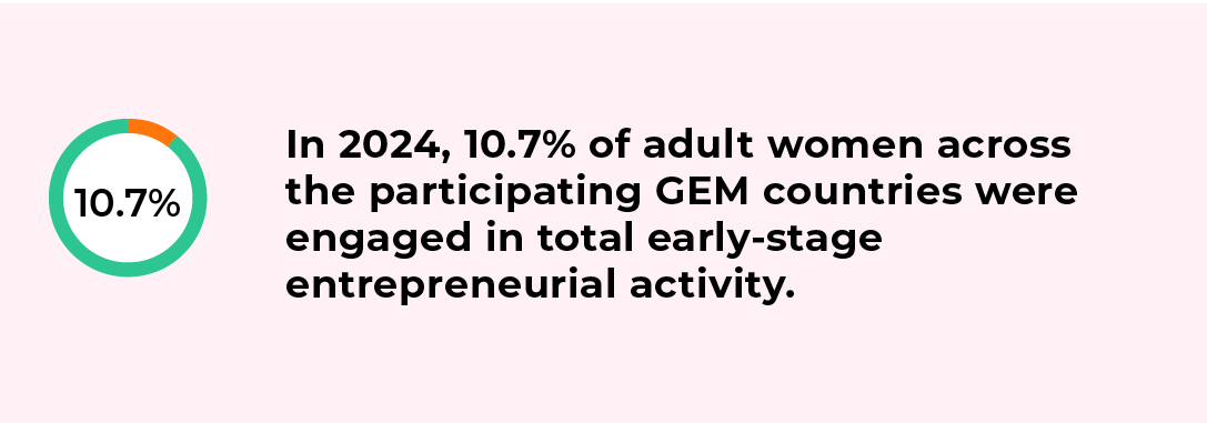• Women’s startup rates were up in 19 of the 47 countries participating in both 2023 and 2024 surveys, most notably in Jordan and Morocco where rates have doubled.
